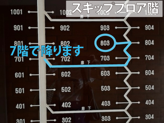 エスポア刈谷803号室はスキップフロア階です。エレベーターを7階で降り、