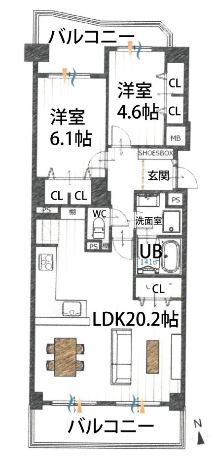 北側の洋室は2部屋あり、同じ北向きバルコニーと繋がっています。