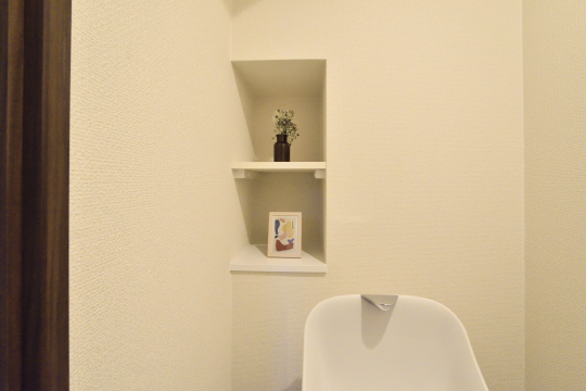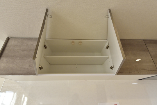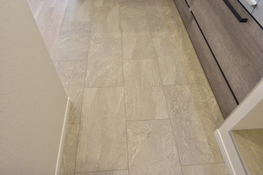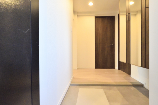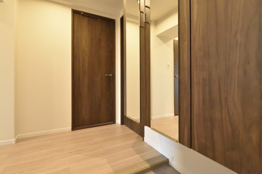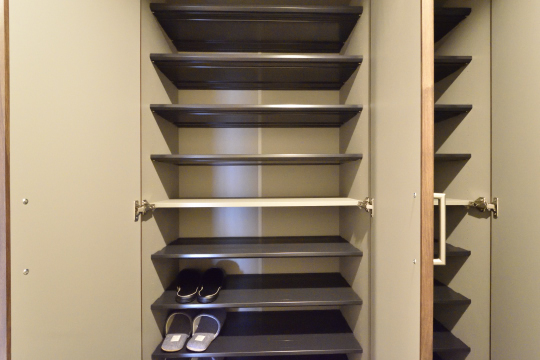 おじゃまします!リノベーション工事が終わったばかりの玄関には新しい靴収納が新設されています。