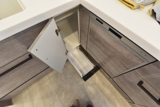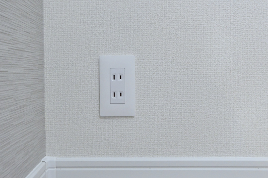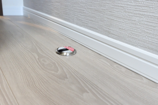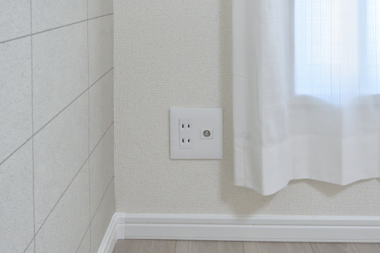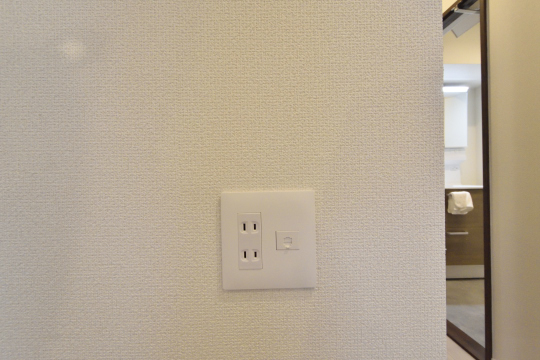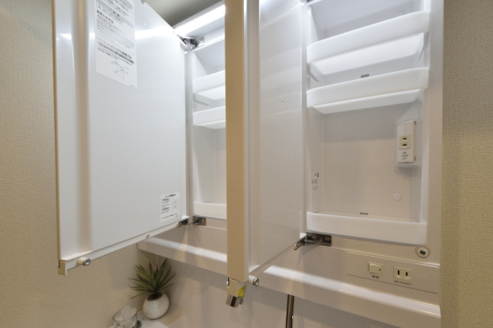 ミラーキャビネットの扉を開けると、コンセントが2つ現れます。