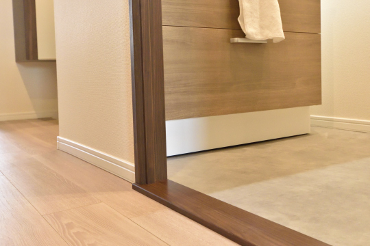鏡付き靴収納でお出かけ前の身だしなみチェック。