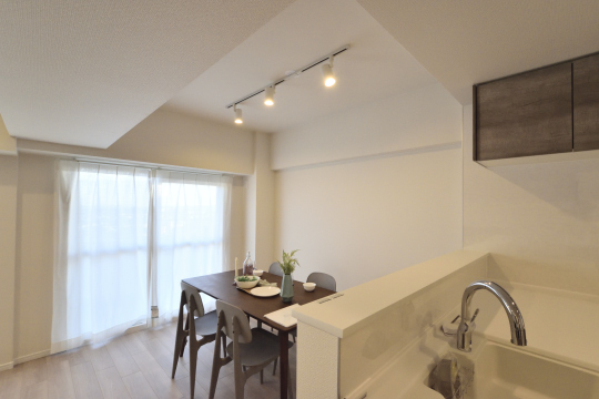 ●システムキッチン交換●洗面化粧台交換●ユニットバス交換●洗濯パン交換●トイレ交換●クロス貼替●フローリング貼替(LD・洋室)●クッションフロア張替(キッチン・洗面室・トイレ)●LED照明・レースカーテン・エアコン1台新設