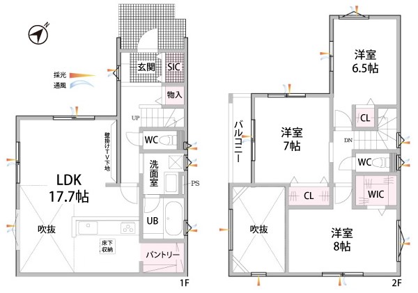1号棟の間取りは3LDK+SIC+WIC+パントリー。収納スペースが豊富です!