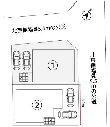 北東側幅員5.5mの公道。交通量少なめの閑静な住宅街です。