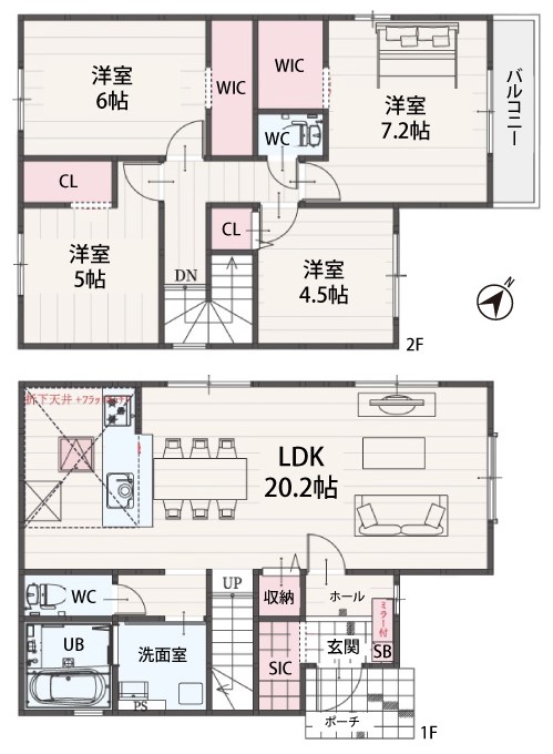 刈谷市野田町 間取り図 2号棟 4LDK+SIC+WIC(2)