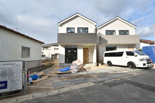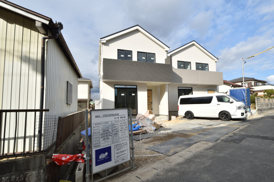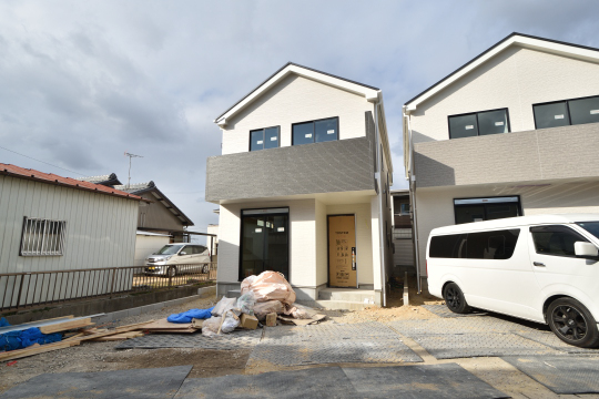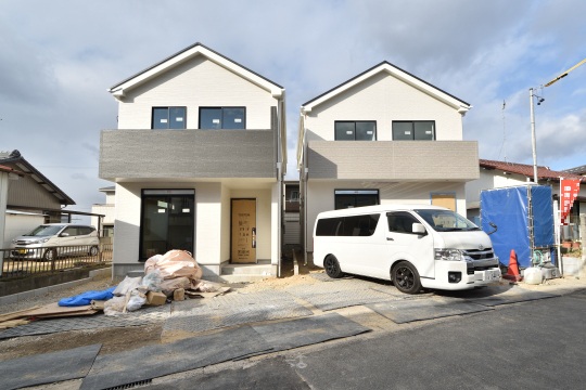 大府市桃山町一丁目【全2棟】新築分譲住宅は、足場が解体されて外観をご覧いただけるようになりました!