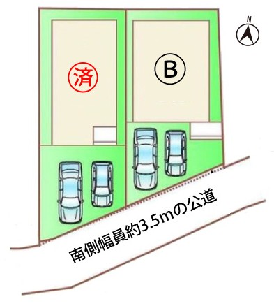 南側幅員約3.5mの公道(セットバック有り)は交通量少なめです。