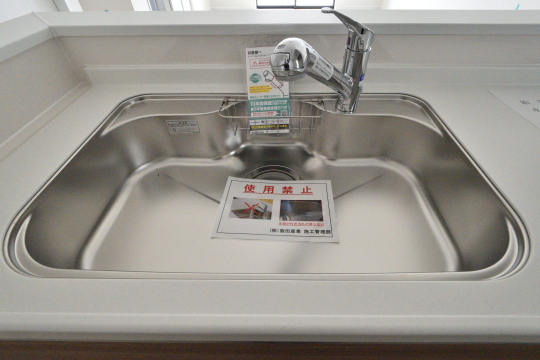 ステンレスシンクに浄水器内蔵ハンドシャワー水栓を標準装備。お手入れ簡単、毎日の調理も快適です。