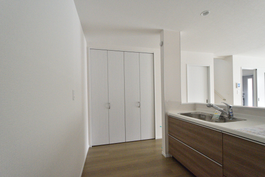 キッチン横に物入があり、LDKをキレイに保てます。