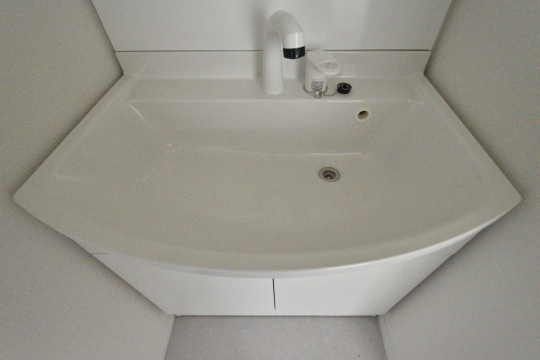 清潔感のある洗面室にはファーストプラス製のシャンプードレッサーがございます。