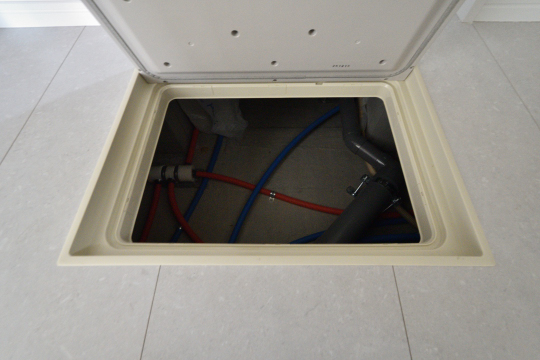 キッチンと洗面室に床下点検口が設けられており、定期的なメンテナンスや、万が一のトラブルに対応しやすい造りです。