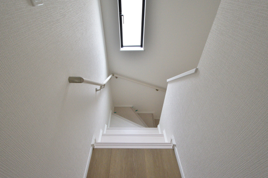 1階のご案内が終わりましたので、2階へ進みましょう!B号棟はリビング階段です。
