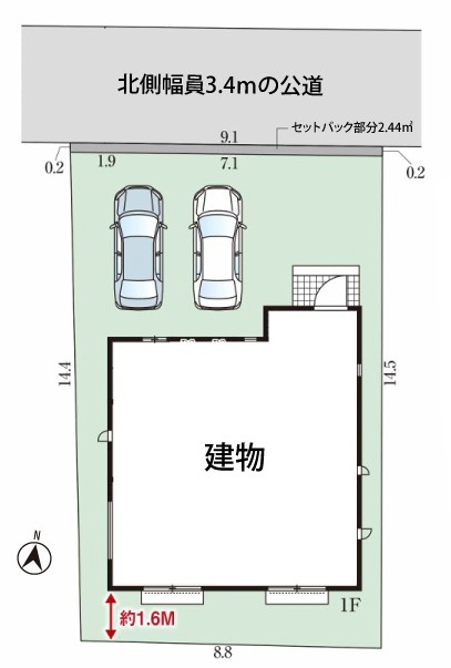 北側の公道は幅員3.4m。(セットバック有り)