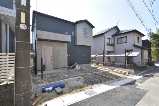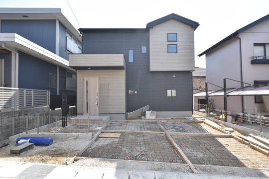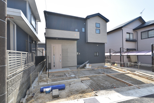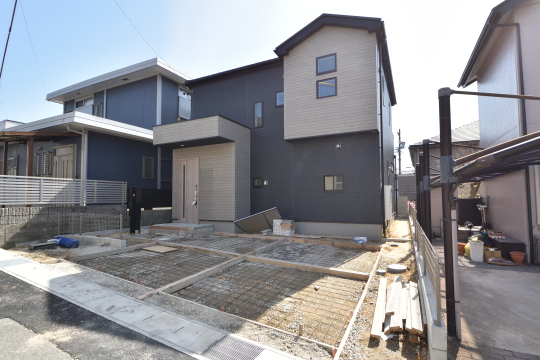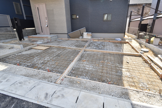 3月5日現在、外構工事中。並列駐車場2台ございます。