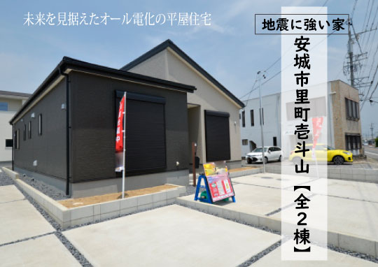 ★安城市里町【全2棟】2号棟4LDK+W.I.C付新築分譲住宅へようこそ。2号棟は環境に優しいオール電化住宅の平屋建!里町小学校より徒歩17分。 7月1日現在