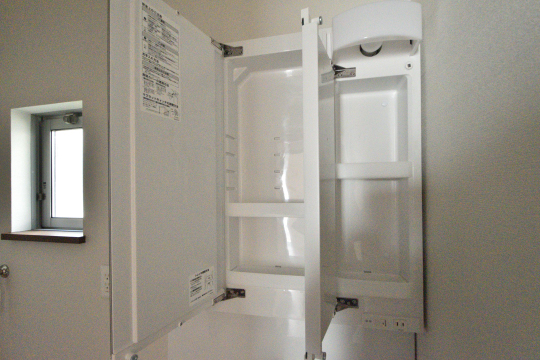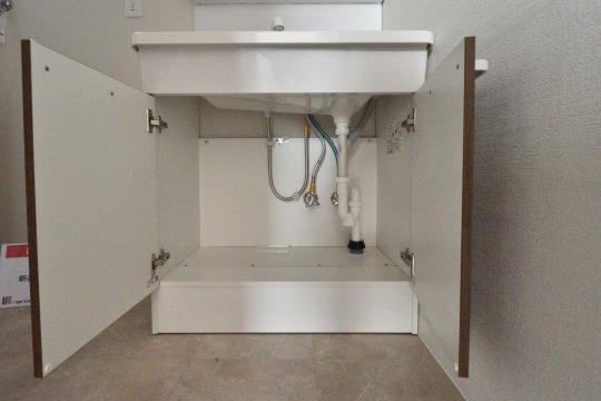 洗剤などのストック品はキャビネットへどうぞ。