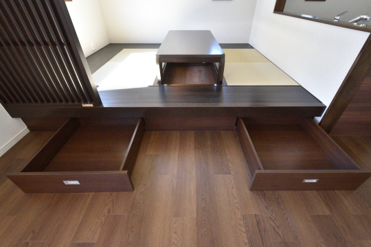 畳コーナー下部に収納有り。
