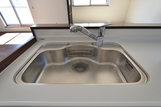 ステンレスシンクに浄水器内蔵ハンドシャワー水栓を標準装備。お手入れ簡単、毎日の調理も快適です。