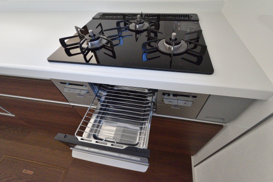 同時調理で時短が叶う三口ガスコンロ。