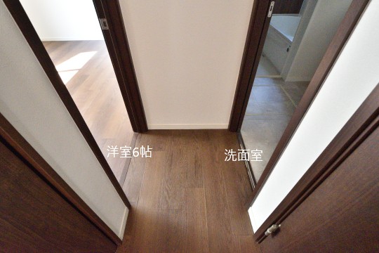 洋室6帖から洗面室へ。
