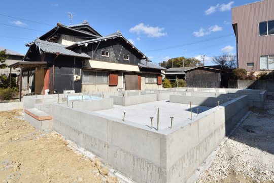 家と同じ床面積を持つ基礎コンクリートによって建物の荷重を地盤に伝える「ベタ基礎」工法です。