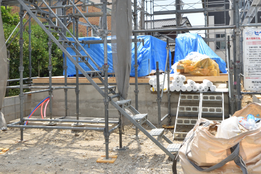7月21日現在、基礎工事中。住まいの安心を支えるベタ基礎工法です。