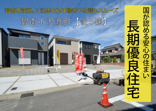 こんにちは。本日は碧南市沢渡町【全5棟】新築分譲住宅へ参りました。長く安心できる住まい、長期優良住宅!