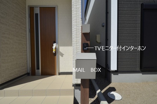 暮らしが便利になる使いやすさとデザイン性の高い玄関門柱には、MAIL BOXとTVモニター付インターホン付。