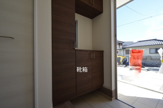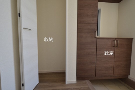 玄関には収納力の高いコの字型のシューズボックスがあり、家族全員の靴もしっかり収納できます。
