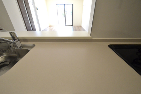 ワークトップ。インテリア性に優れた人造大理石製。肌触りがよく、耐久性があり、清掃性にも優れています。