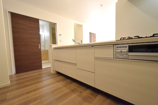 リビングが見渡せる子育てに優しい対面型キッチン。