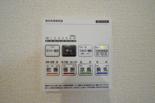 換気乾燥暖房機リモコン(乾燥・暖房・涼風・換気)機能付きでヒートショック対策にもなります。