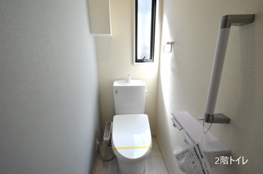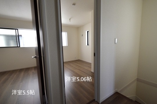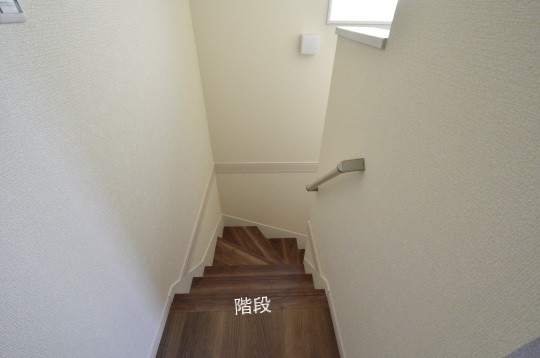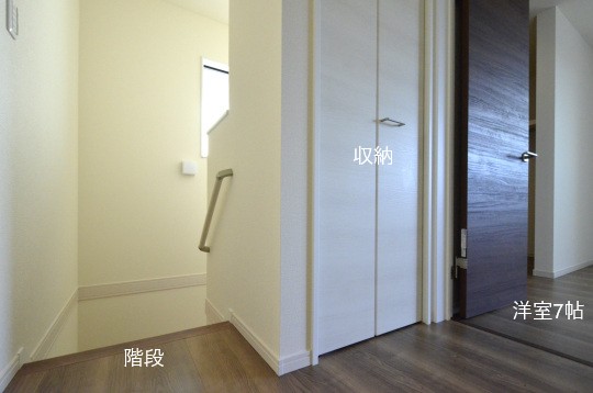 手すり付き階段で二階へ参りましょう。二階には洋室三部屋ございます。