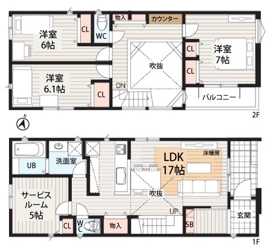 5号棟の間取りは3SLDK。ダイニング上部が吹抜けになっており開放的です。