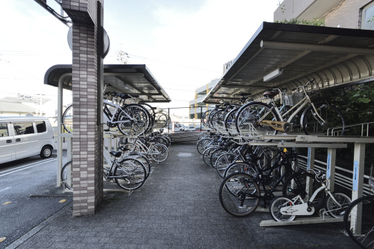 駐輪場の使用料は1台100円(月額)。ステッカー配布されます。