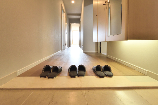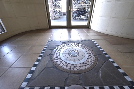 オートロックを解除し、ガラス窓が多い開放感のあるエントランスへ。
