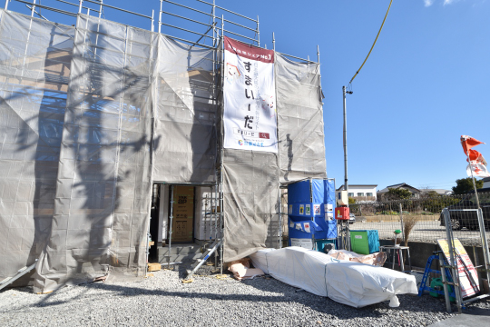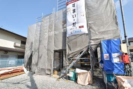 2月23日現在、外壁工事中。