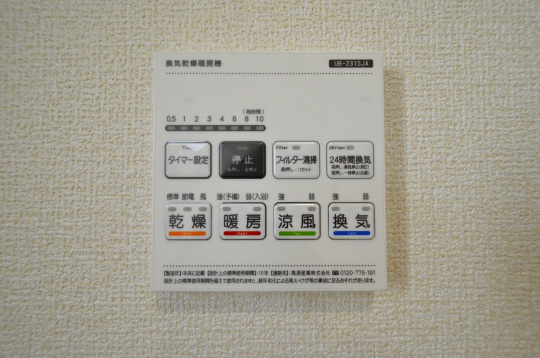換気乾燥暖房機リモコン(乾燥・暖房・涼風・換気)機能付きでヒートショック対策にもなります。