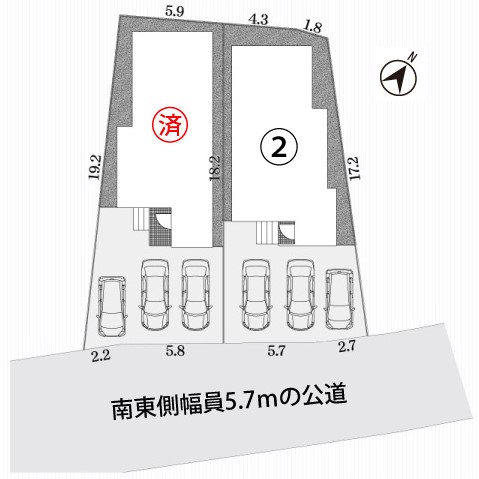 | 接道状況 | 南東側幅員5.7mの公道に接面 | ||