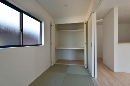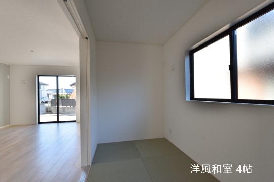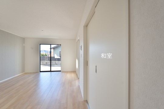 LDKとつながる続き間の和室がございます。リビングの雰囲気に馴染む洋風仕上げの和室4帖です。