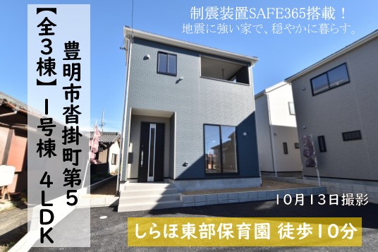 ★豊明市沓掛町第5【全3棟】1号棟ページへご訪問ありがとうございます!しらほ東部保育園より徒歩10分。制震装置SAFE365搭載の地震に強い家です!