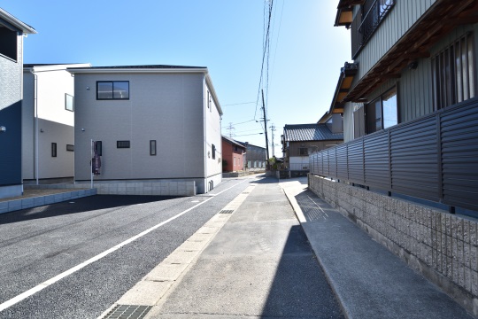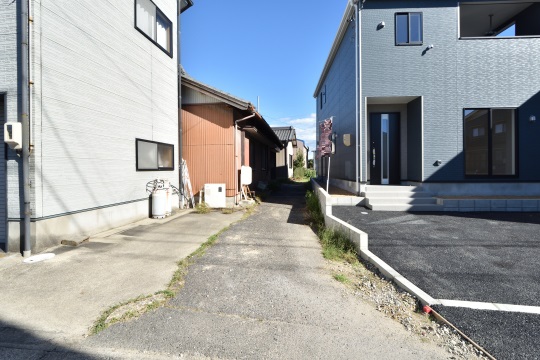 西側の公道は幅員2.5~2.6m(セットバック有り)。交通量少なめの閑静な住宅街です。