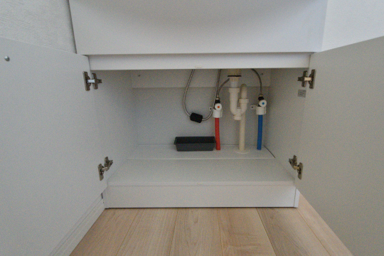 洗剤のストックなどはキャビネットへスッキリ収納できます。