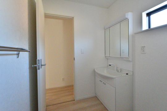 清潔感のある洗面室にはファーストプラス製のシャンプードレッサーがございます。