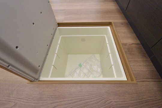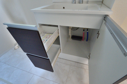 洗面室とキッチンに床下点検口(収納庫付)が設けられています。定期的なメンテナンスや、万が一のトラブルに対応しやすい造りです。