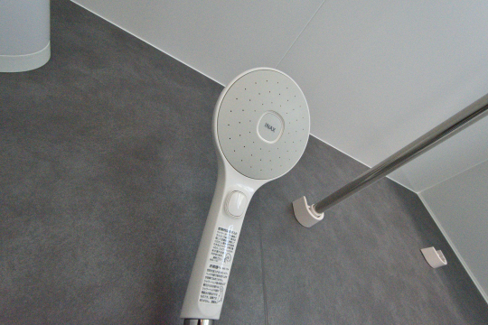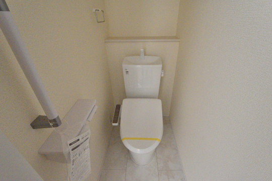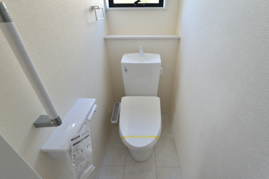 LIXIL製シャワートイレです。手摺り・ペーパーホルダー・タオル掛け・カウンター付き。
