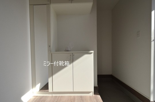 玄関にはミラー付の靴箱。