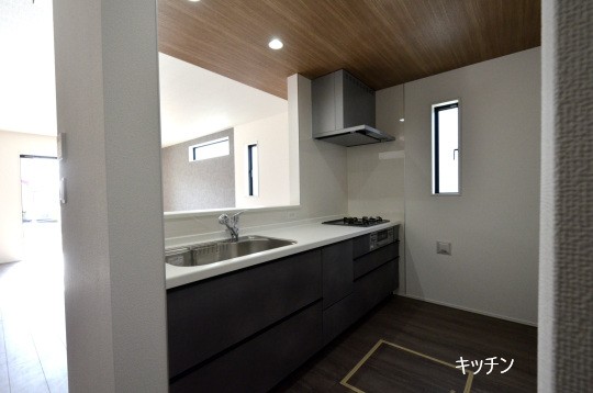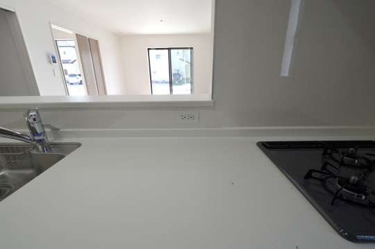 リビングが見渡せる子育てに優しい対面型キッチン。