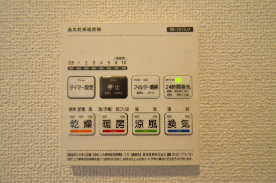 換気乾燥暖房機リモコン(乾燥・暖房・涼風・換気)機能付きでヒートショック対策にもなります。