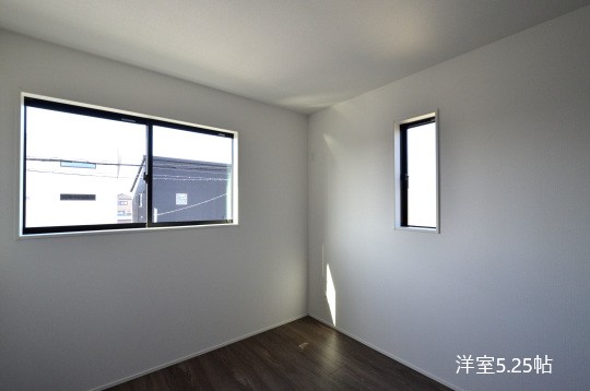洋室5.25帖+北・西の二面採光。グラファーレの住まいでは、ベースカラーに白やナチュラルウッドを使用。